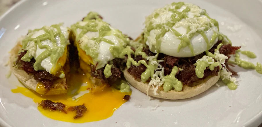 This take on Eggs Benedict takes that fusion of cuisines and adds a Mexican inspired flare to it. The barbacoa replaces Canadian bacon and a creamy jalapeño avocado sauce replaces Hollandaise sauce. This is an excellent twist on a classic dish.