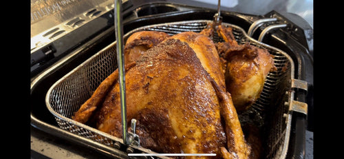 Once the hush puppies are done, allow them to drain in fryer basket before removing.