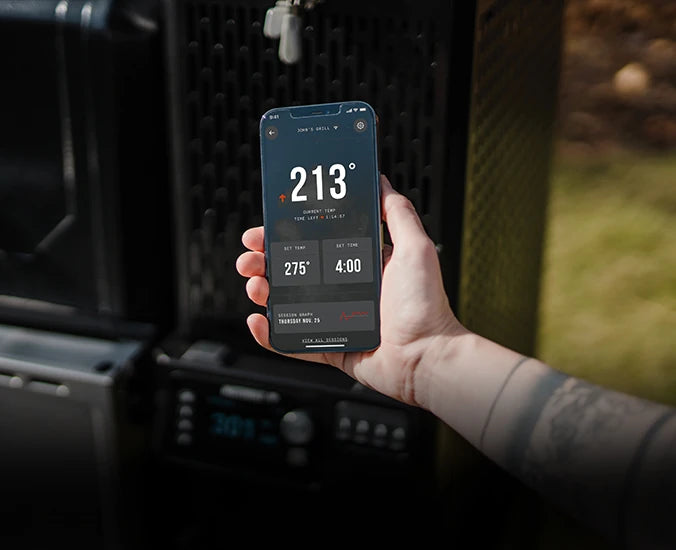 Programa y controla el tiempo y la temperatura de cocción en el Panel de Control Digital o en la App Masterbuilt.