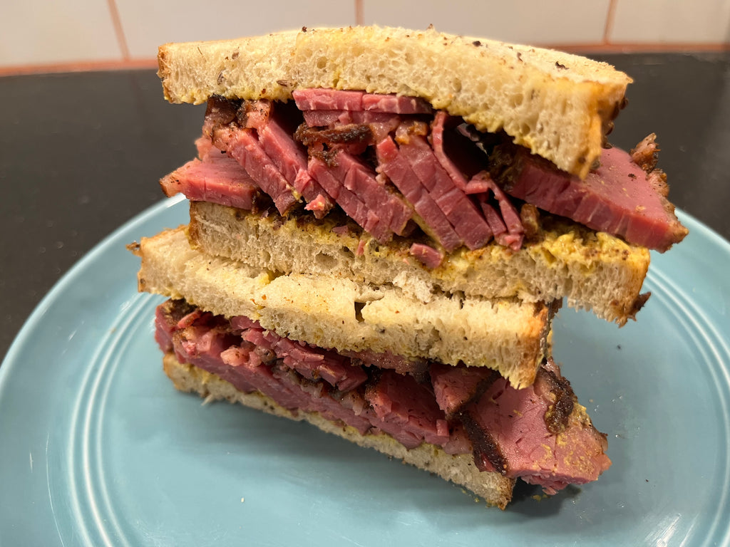 Slice your pastrami against the grain and enjoy either on its own or piled high onto a sandwich.