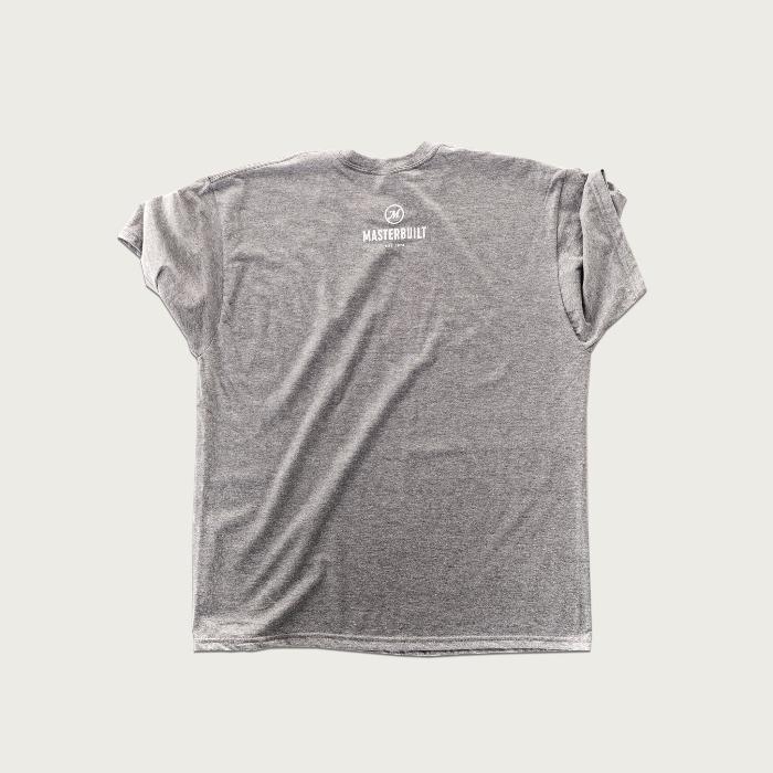 Short-sleeved gray tee reads #SMOKEON on the front and has the Masterbuilt name and logo on the back.